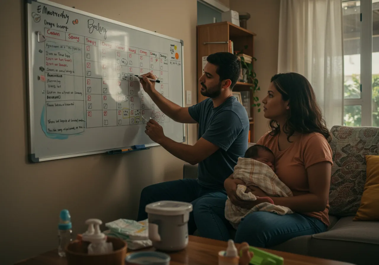 Organizar nova rotina de casa com equilíbrio e parceria. Ideal para não se perder nos primeiros meses.